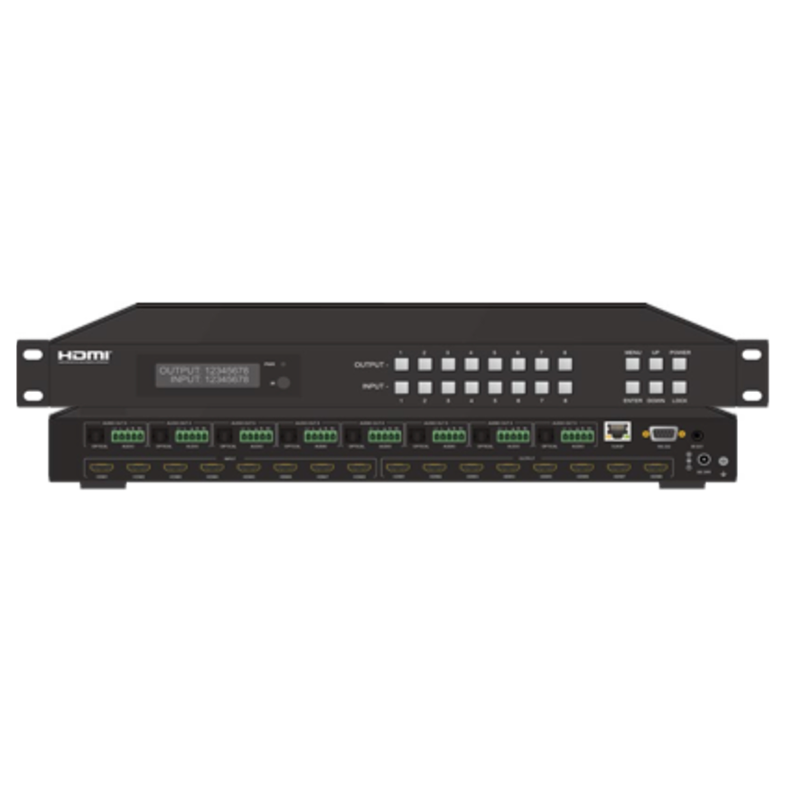 信号规模: 8通道输入 (HDMI/AUDIO/IR),8通道输出(HDMI/AUDIO/IR),同步切换